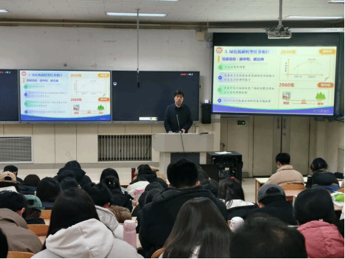 12月20日,我校党委常委、副校长李向阳教授以“锚定“双碳”目标、守护能源安全,为推动绿色转型发展贡献青春伟力”为题,在立信106阶教给2022级信息学院和2022级统计学院共150名学生讲了一堂既生动活泼又深刻透彻的思想政治理论课。