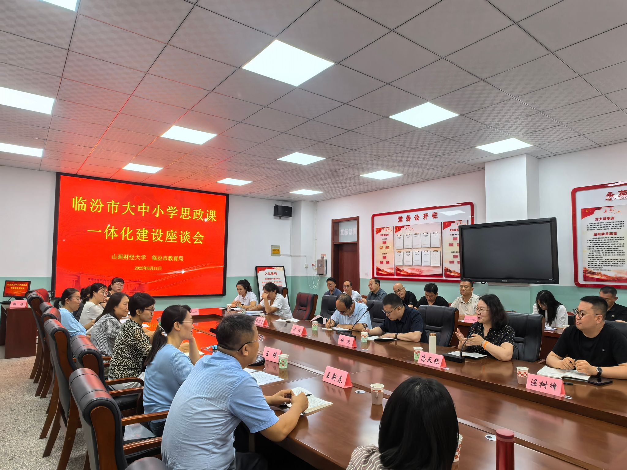 大思政课建设研究中心副主任张翼副教授共同主持座谈会。调研团队成员同来自临汾市第三小学、临汾市第一中学、临汾市第一实验中学、平阳中学等中小学校的30余位德育主任、思政课教师开展交流沟通。双方围绕大中小学思政课纵向贯通、横向衔接这一核心议题,在教学理念、教学内容、教学方法、教学资源开发利用等方面进行了多维度探讨,就大中小学思政课一体化建设理路达成了共识。