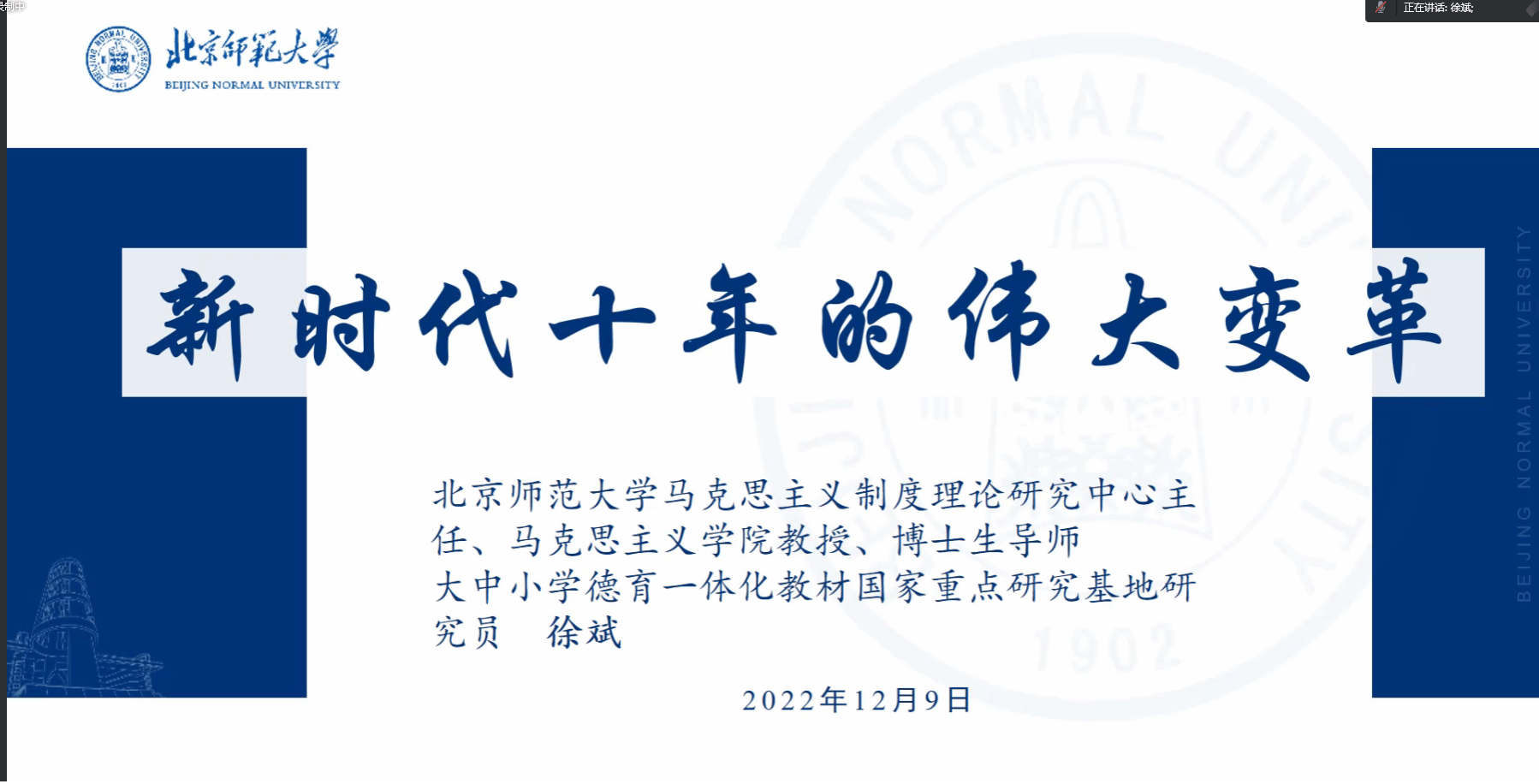 北京师范大学马克思主义制度理论研究中心主任、教授、博士生导师徐斌做了题为《新时代十年的伟大变革——深刻把握党的二十大精神》的主题报告。徐斌教授指出,不断加强对党的二十大精神的理解与把握是思政课教师的重要职责。思政课教师要持续深入学习党的二十大精神,做到原原本本吃透、全面准确理解、精准把握外延,围绕党的二十大提出的重大思想、重大观点、重大论断加强研究阐释工作。