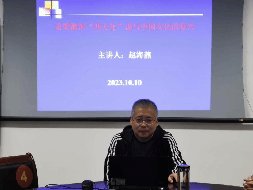 10月10日19:00-21:00,泥巴影视 马克思主义基本原理学科团队在院小会议室举行讲座活动。赵海燕副教授做了题为《论梁漱溟“西方化”说与中国文化的复兴》的学术报告。本学科方向部分教师和研究生参加了此次活动。讲座由学科带头人李鹏教授主持。