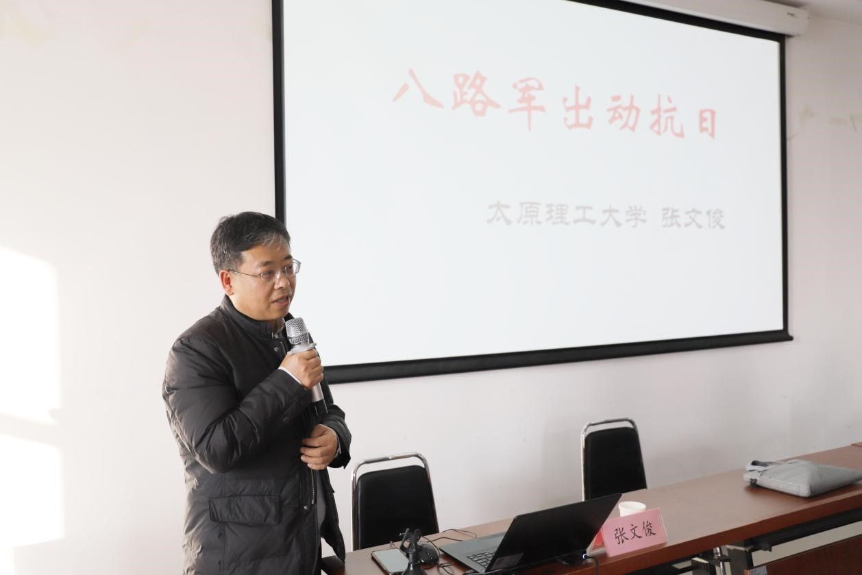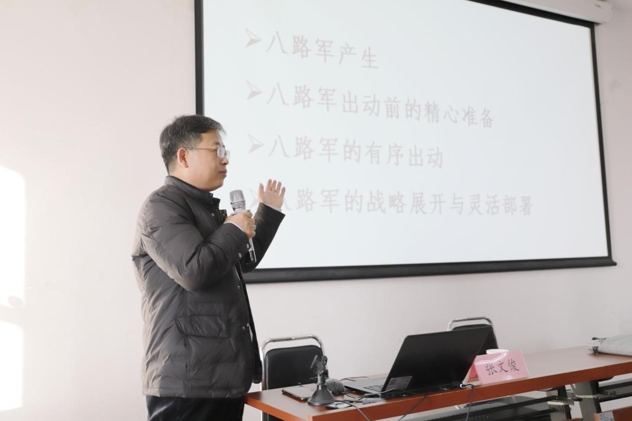 张文俊教授作了主题为“八路军出动抗日”的精彩报告,活动由王星慧副教授主持,学院师生共同参加。