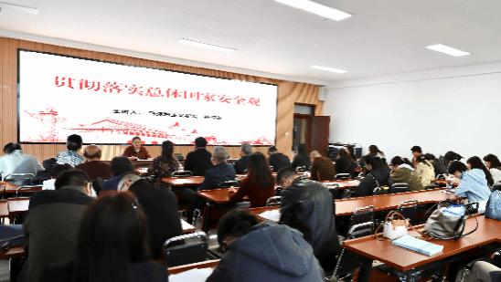 在学院会议室举办“总体国家安全观”专题讲座。本次讲座由学院孙军英老师主讲,学院党政领导班子成员及全体教师参与学习。