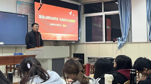 12月25日,校党委常委副书记寇福明教授以“重温山西抗战历史弘扬伟大抗战精神”为题,在立信202阶教为2024级计算机科学与技术1班、2班和3班166名本科生带来了一堂兼具历史厚度与思想深度的思想政治理论课,带领青年学子在回望烽火岁月中感悟精神力量,在传承红色基因中明确使命担当。
