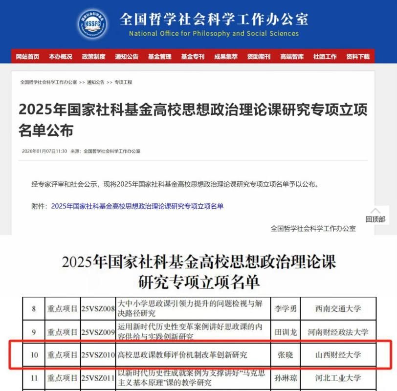 张晓教授获批重点项目“高校思政课教师评价机制改革创新研究(批准号:25VSZ010),该项目既是山西省高校唯一的1项重点项目,也是我校国家社科基金高校思想政治理论课研究专项重点项目零的突破。