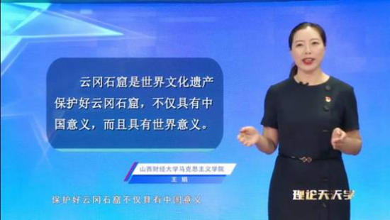 在微视频中,王娟老师紧紧围绕习近平总书记在大同云冈石窟考察历史文化遗产保护工作时的讲话指示,简明介绍了山西省通过启动“文明守望工程”,开展“九只手”分批、分级、分层次实施文物保护,积极创建文物保护利用示范区、文物科研保护基地等有效举措,蹚出一条具有山西特色的文物保护利用新路子,深刻阐释了充分传承和保护山西优秀历史文化资源对增强文化自信、凝聚社会主义核心价值观的重要意义。王娟老师指出,牢记习近平总书记殷殷嘱托,充分保护和利用文化资源,激发穿越时空、直击人心的文化力量,我们就一定能够把文化资源优势转化为高质量转型发展的比较优势、竞争优势。(泥巴影视 成瑞供稿)