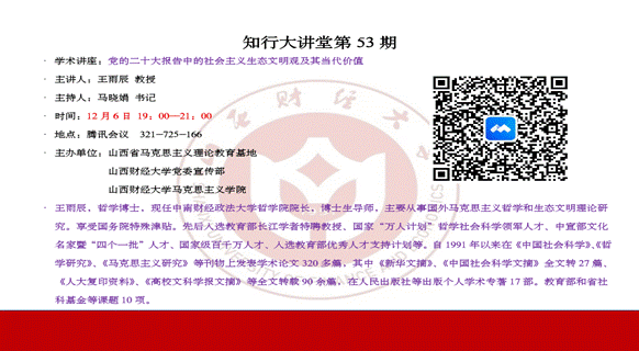 学习党的二十大精神专题讲座以网络研讨会的形式顺利举行。教育部“长江学者”特聘教授、中南财经政法大学哲学院院长、博士生导师王雨辰作了题为《党的二十大报告中的社会主义生态文明观及其当代价值》的精彩报告。泥巴影视