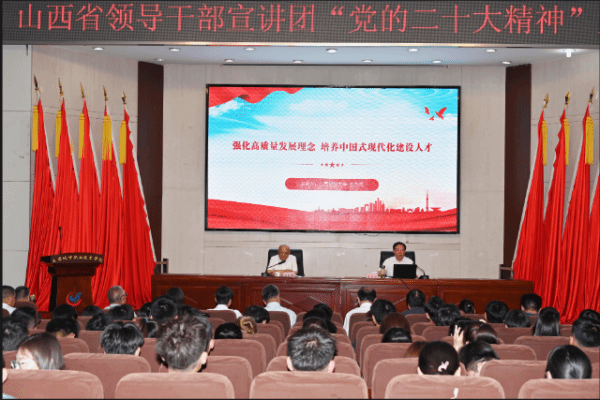 院长张永德教授作为山西省领导干部宣讲团成员受邀在太原城市职业学院作党的二十大精神专题宣讲。太原城市职业学院党委书记杨敦勤主持报告会,孙华东院长等学院领导,全体中层干部、思政课教师、组织员、专职辅导员及学生代表参加报告会。