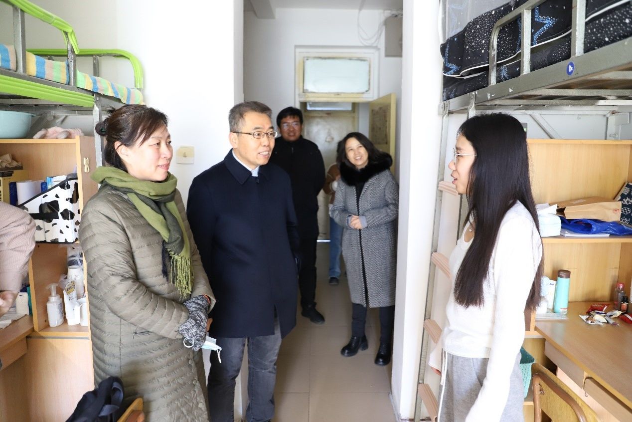 院长杨茂林、党委书记马晓娟、副院长郭永园一行先后来到4栋学生宿舍楼、14个宿舍,仔细查看学生宿舍内的整体环境卫生及宿舍内电器安全使用情况,在严寒的冬日为同学们送来了学院的温情和关怀。