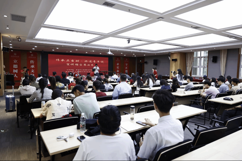 此次宣讲擂台赛自4月启动,学生参与热情高涨,共有300余名选手报名参赛。前期经过三场长达四小时的初赛筛选,共有9支队伍进入决赛。