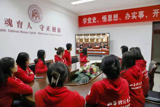 在党委理论学习中心组(扩大)学习会上,党委书记王贵明围绕全会概况、公报主要内容、《中共中央关于党的百年奋斗重大成就和历史经验的决议》出台的历史意义等进行了介绍和阐述。他强调,要从历史和全局的高度深刻领会党的十九届六中全会精神的丰富内涵和重大意义,切实把思想和行动高度统一到全会精神上来,对照工作实际,善于将党百年奋斗的历史经验转化为推动我校加快建成有特色高水平国内一流财经大学的重要力量。